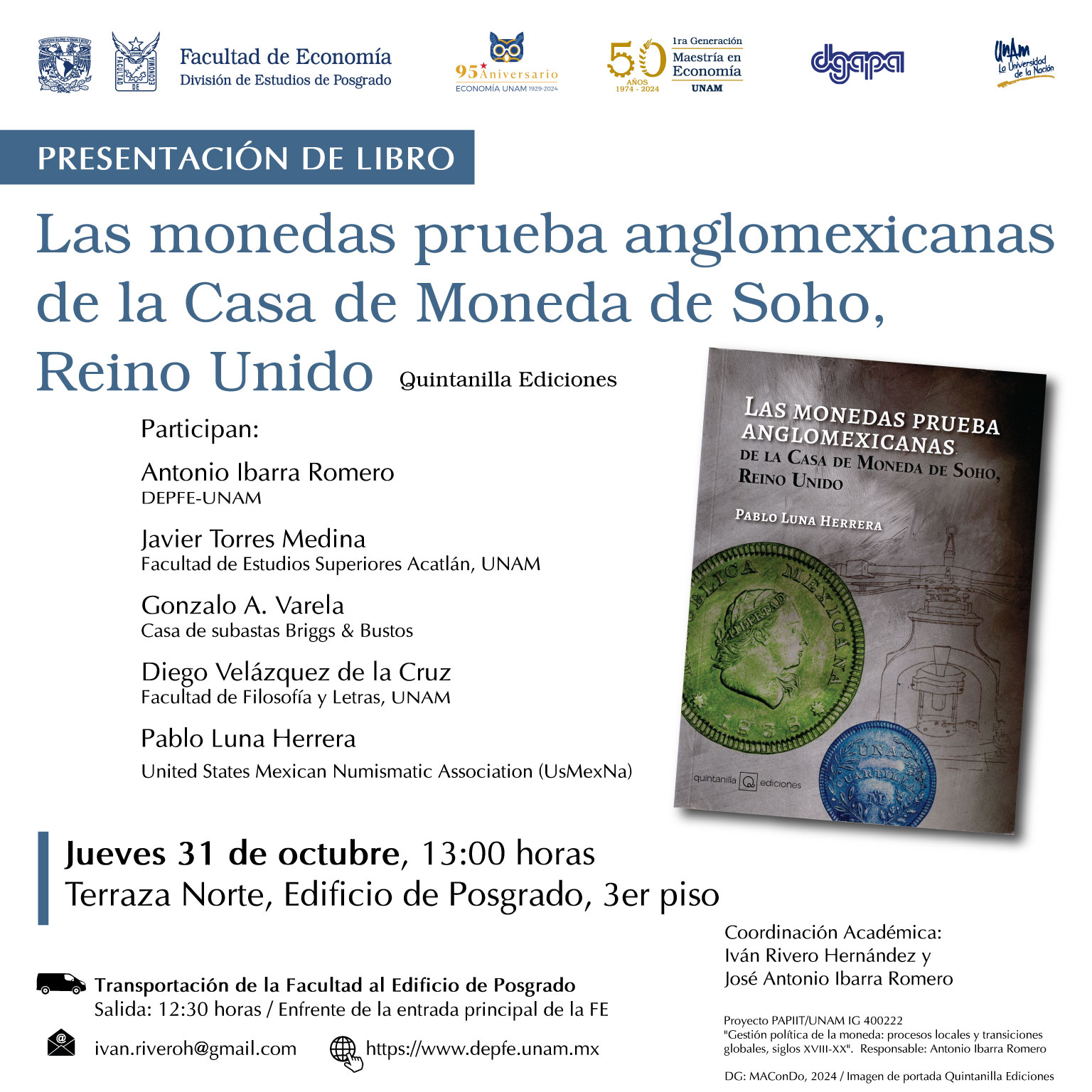 2022. «Las Monedas Prueba Anglomexicanas de la Casa de Moneda de Soho, Reino Unido» (The Mexican Pattern coin «Cuartillas» from the Soho Mint»). ISBN: 978-607-8801-41-1.