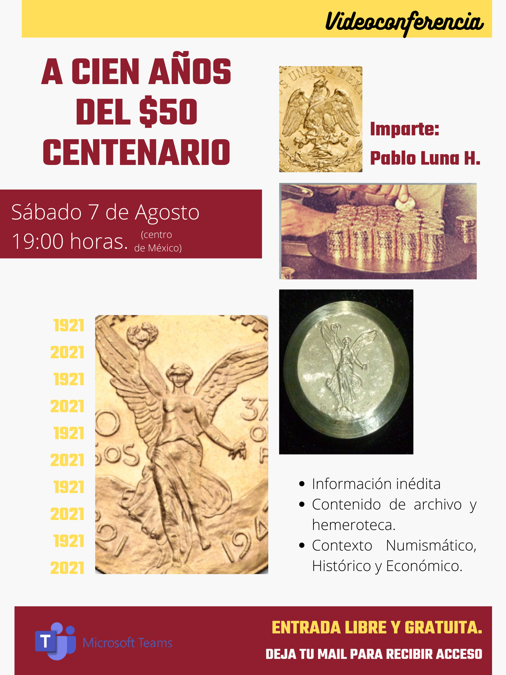 - March 2022: Origin, development and current existence of the fifty Pesos centenario coin.