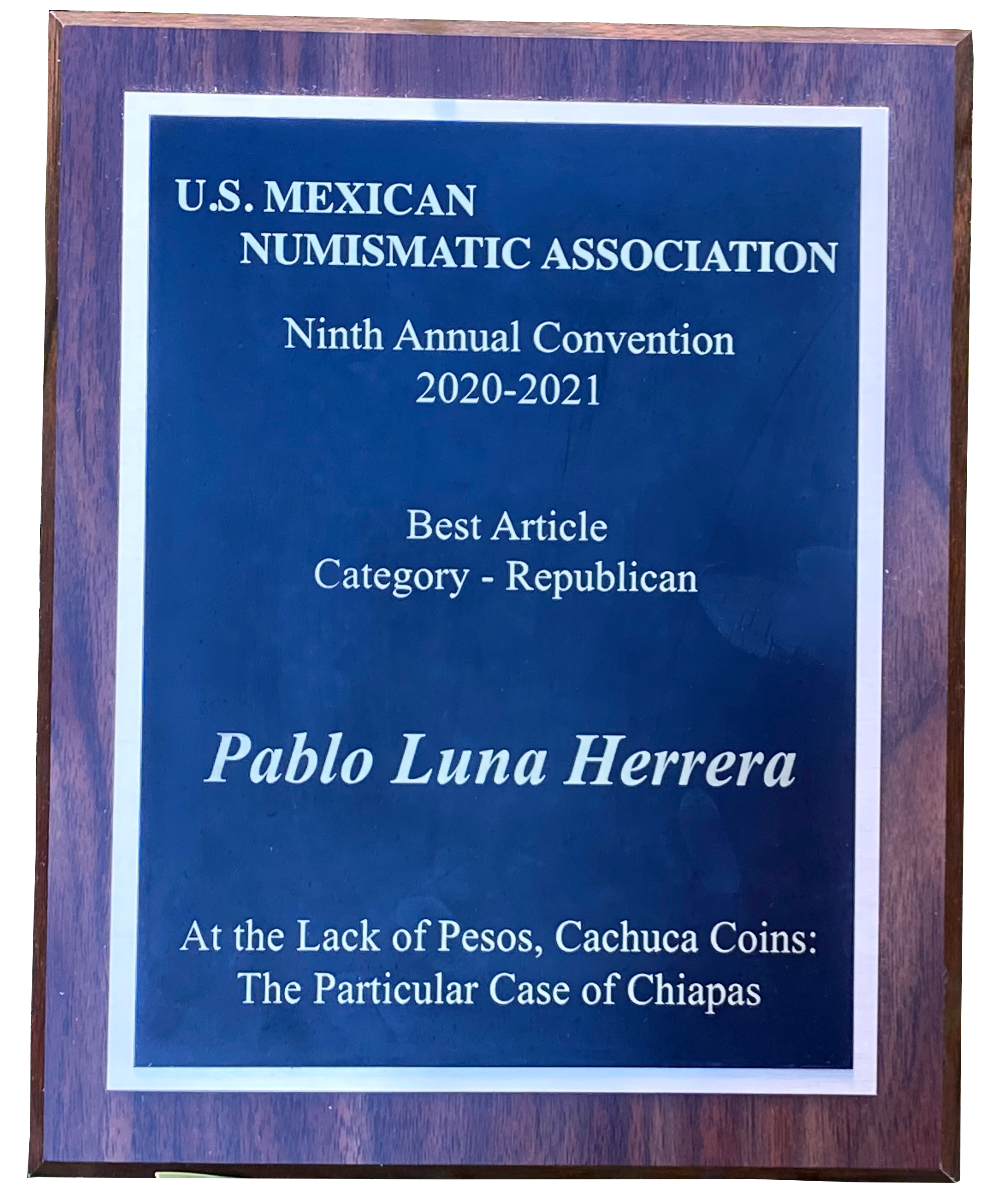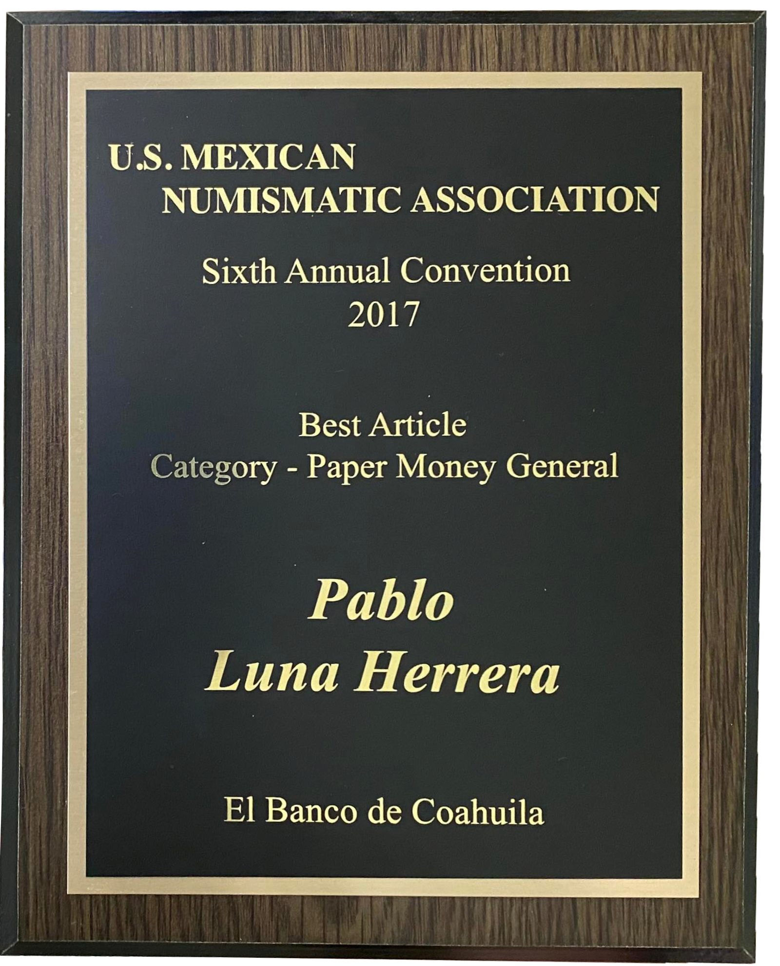 Presentado en la décimo tercera convención anual de la UsMexNa (United States Mexican Numismatic Association), Hilton Scottsdale Resort & Villas, Arizona