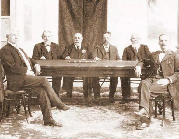 Primer consejo de administración del Banco de Coahuila en 1900De pie Don Francisco Narro Acuña, Lic. Don José López Moctezuma, Don Rómulo Larralde. Sentados. Don Henry Mass, Don Marcelino Garza, Don Manuel Mazo, Don Crescencio Rodríguez G..
