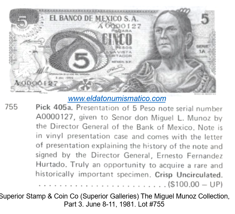 Respecto a los billetes, en el contrato celebrado entre la American Bank Note Company de Nueva York (empresa que elaboraría los billetes de banco de México hasta 1978) destacan los siguientes puntos: