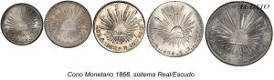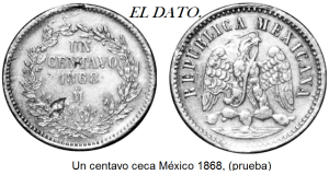 *La moneda de 1 centavos de 1863 se autoriza por el decreto del 17 de junio de 1863.