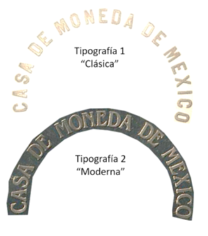 - Tipografía “Casa de Moneda de México”: Se presentan dos estilos, el #2 un poco más elaborado, que es el de la presente pieza. El #1 es el usado desde las Onzas Troy.