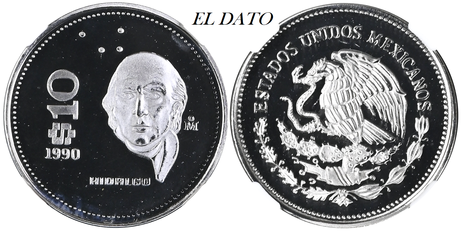 Ahora bien, cobra relevancia relatar las primeras y más relevantes acuñaciones con el terminado espejo/proof que ha realizado la Casa de Moneda de México, se sabe que estas modernas técnicas de acuñación llegaron a México en la década de los 70s. Contrario a lo que se piensa que fue en los 80s. El ejemplo de la moneda más antigua que un servidor la logrado recopilar en acabado espejo corresponde a un Hidalgo 10 pesos “Tuerca” de 1974 (KM #477.1) esta serie de monedas se acuñaría de 1974 a 1985. (Aunque se tiene registros de un 20 centavos Pirámide 1973 que no circuló, PL-40)
