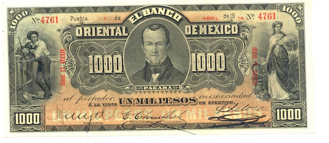 El siguiente dato se puede considerar como un breve repaso de todos los bancos estatales y nacionales que emitían billetes en México, más me limito mencionar los principales bancos de cada estado, no menciono compañías, haciendas, negocios, particulares etc. que emitían papel moneda. Ni detallo fechas, más es importante hacer notar que el billete revolucionario se considera cuando Huerta saquea las reservas de los bancos emisores haciendo que sus billetes no tengan respaldo alguno.