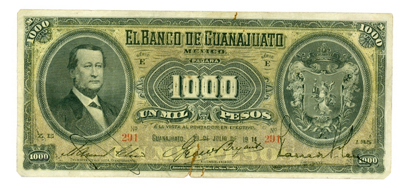 La banca mexicana de remonta a la independencia Mexicana cuando en San Miguel el Grande Guanajuato se utilizan pequeños billetes cuadrados de cartón, actualmente muy escasos y raros.