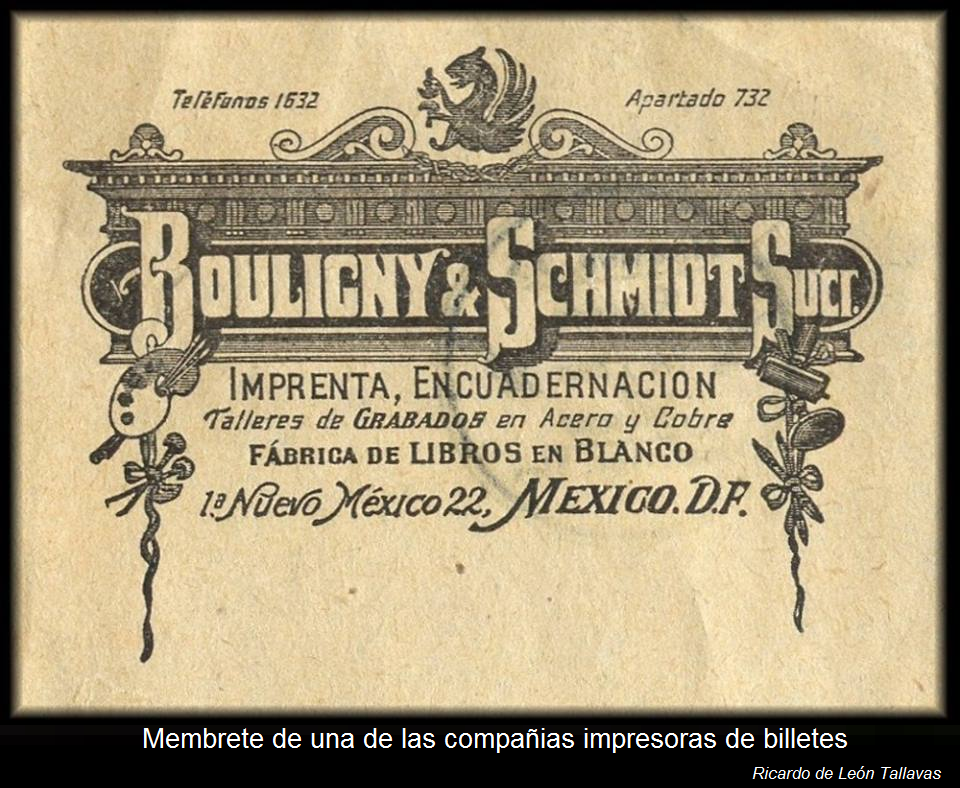 Otro tema sub-tema interesante en la emisión de billetes son las características y diseño de cada pieza hay algunos que son verdaderas obras de arte con excelentes grabados. Los principales impresores de billetes fueron: